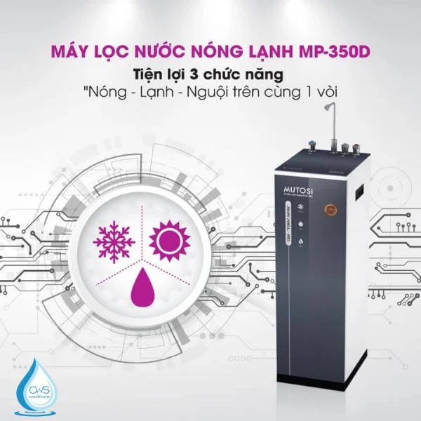 Máy lọc nước Mutosi MP-350D-BKQ không chỉ là máy lọc mà còn là thiết bị gia dụng tiện nghi, cung cấp nước nóng, nước lạnh, nước nguội.