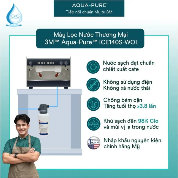- Đối với Kinh doanh F&B: Tốc độ lọc nhanh và công suất lớn là yếu tố then chốt giúp các quán cà phê, nhà hàng, quán nước giải khát hoạt động hiệu quả, đáp ứng nhu cầu cao điểm của khách hàng một cách nhanh chóng. Máy lọc nước 3M Aqua-Pure ICE140S-WOI có thể cung cấp đủ nước cho các thiết bị thương mại như máy làm đá công suất lớn (đến 450kg/ngày) hoặc máy pha cà phê chuyên nghiệp mà không bị gián đoạn nguồn cung, tối ưu hóa quy trình pha chế và nâng cao năng suất phục vụ.